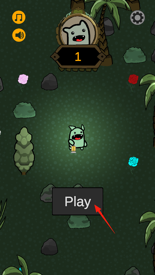 1、進入游戲初始場景,看到Play按鈕,點擊開始,進入冒險關卡,借助點擊啟動機制,讓角色踏入神秘島嶼,通過操作,開啟生存挑戰(zhàn),感受探索未知的樂趣。
