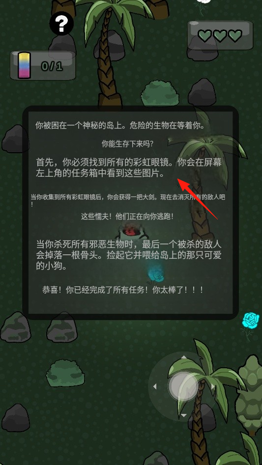 2、在說明界面,閱讀任務指引,了解收集彩虹眼鏡、消滅敵人等目標,利用任務提示機制,明確行動方向,通過閱讀,規(guī)劃冒險路徑,體驗劇情驅動的玩法,感受目標探索的互動。