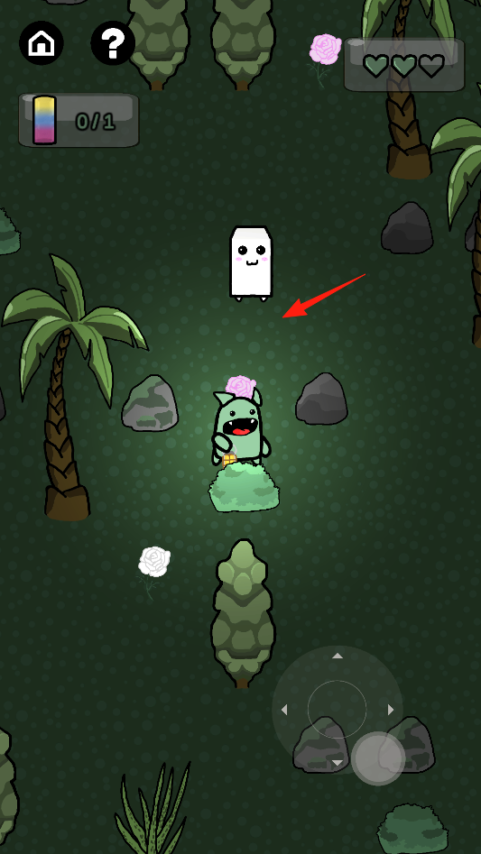 3、在島嶼場景,操控角色移動,靠近白色生物,觸發(fā)互動,借助場景探索機制,推進任務進程,通過操作,解鎖新內容,體驗冒險中的隨機遭遇,感受探索與互動結合的樂趣。