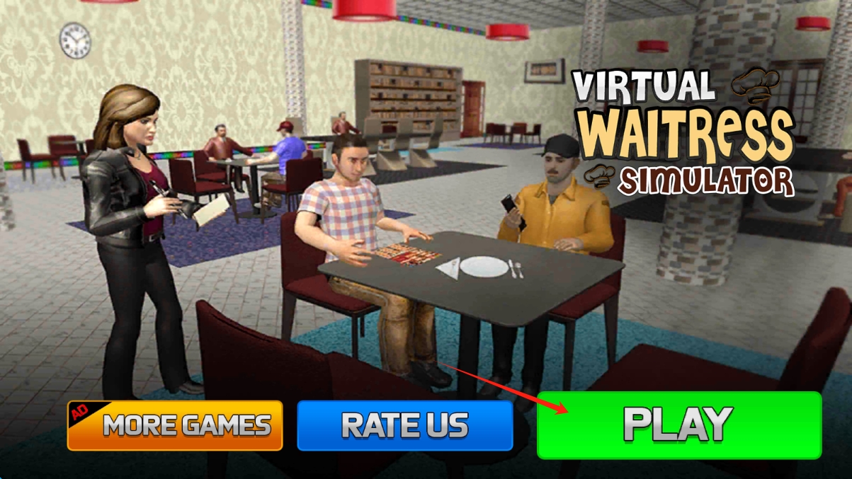 1、打開Virtual Waitress Simulator,點(diǎn)擊PLAY,進(jìn)入關(guān)卡選擇,點(diǎn)擊開始游戲。
