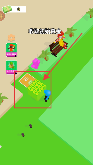 2、在游戲初始場景,按提示收取初始資金,獲取啟動資金,為快餐店經(jīng)營做準備。