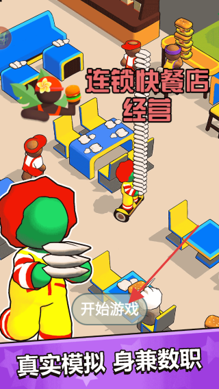 1、游戲啟動界面,點擊開始游戲按鈕,進入連鎖快餐店經(jīng)營游戲環(huán)節(jié),開啟快餐店經(jīng)營挑戰(zhàn)之旅。