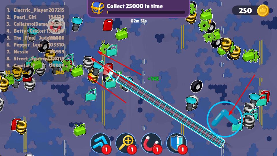 3、留意上方任務(wù)提示、時(shí)間限制和金幣數(shù)量,根據(jù)場(chǎng)景變化合理規(guī)劃移動(dòng)策略,努力完成收集任務(wù),提升排名。