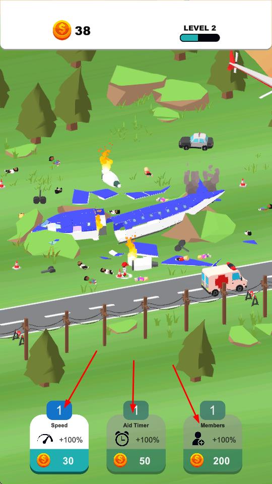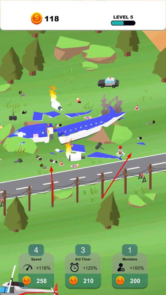 2、根據(jù)紅色箭頭提示,選擇合適的救援策略,如提升救援速度、縮短救援時(shí)間、增加救援人員等,合理分配金幣資源進(jìn)行升級(jí)。