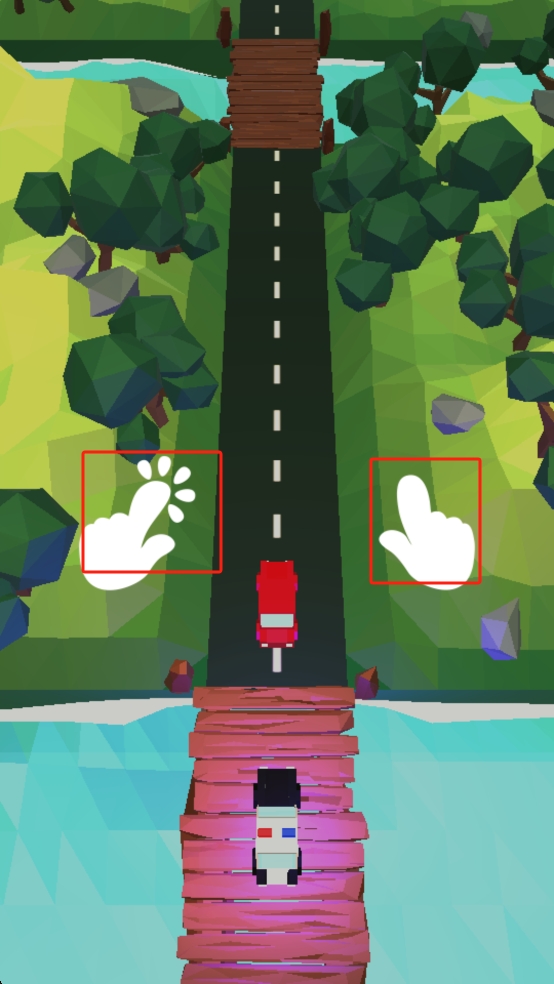 1、開(kāi)局操控紅色汽車,通過(guò)點(diǎn)擊左右側(cè)手勢(shì)區(qū)域切換車道,避開(kāi)前方斷橋與警車攔截,規(guī)劃初始逃生路線。