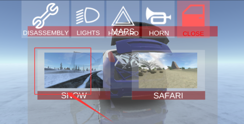 2、在車庫瀏覽20+款專業(yè)越野車型,根據(jù)賽道特性選擇合適座駕。