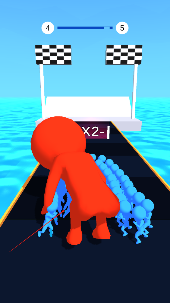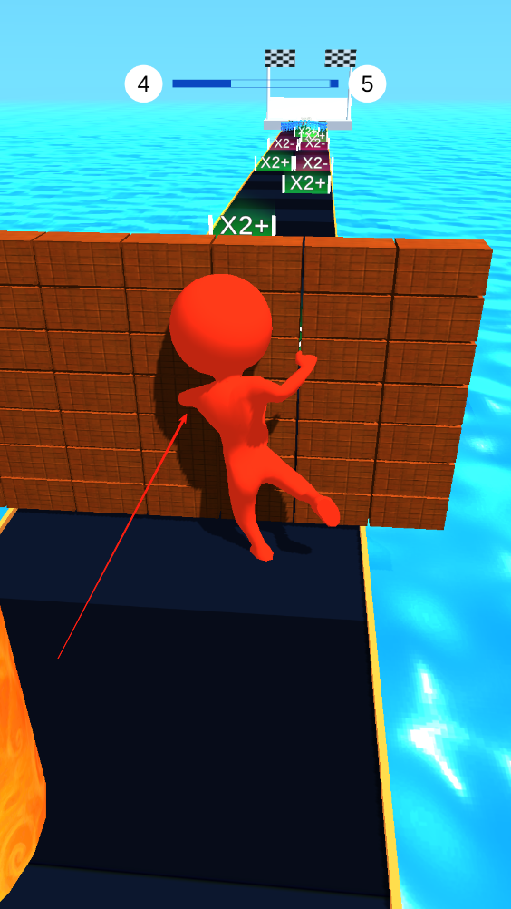 1、點擊屏幕控制橡皮人左右移動,靠近前方屏障,走到綠色屏障,小人會變得更大,也會跑得更快。