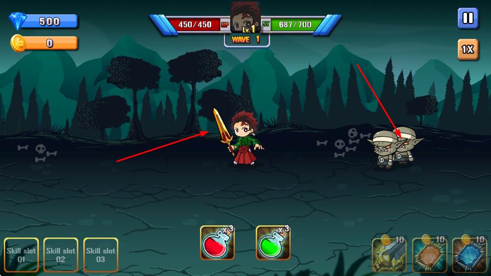 2、在戰(zhàn)斗場(chǎng)景,操控角色移動(dòng),點(diǎn)擊攻擊方向,對(duì)怪物發(fā)起進(jìn)攻,利用技能槽策略釋放技能。