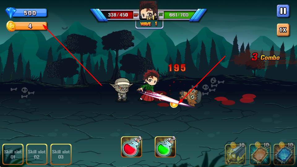 3、戰(zhàn)斗中拾取怪物掉落金幣,留意血量變化,適時(shí)使用紅綠藥水恢復(fù),爭(zhēng)取存活并推進(jìn)波次。