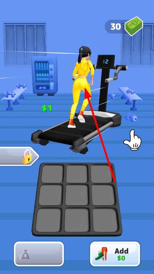 2、趣味運動反饋:角色運動姿態(tài)、跑步機數(shù)據(jù)速度、收益隨道具升級動態(tài)變化,搭配運動音效,模擬真實健身房場景,讓經(jīng)營過程更具沉浸感與趣味。