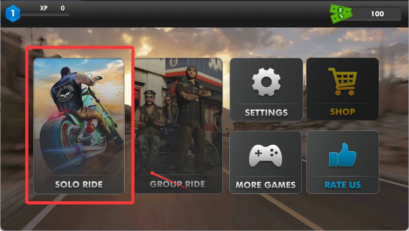 1、進入游戲后點擊solo ride開始游戲。