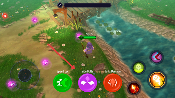 2、界面會顯示各類技能和增益效果按鈕,如Speed Up可提升移動速度,Side Bolts和Bolts Damage可增強攻擊能力。