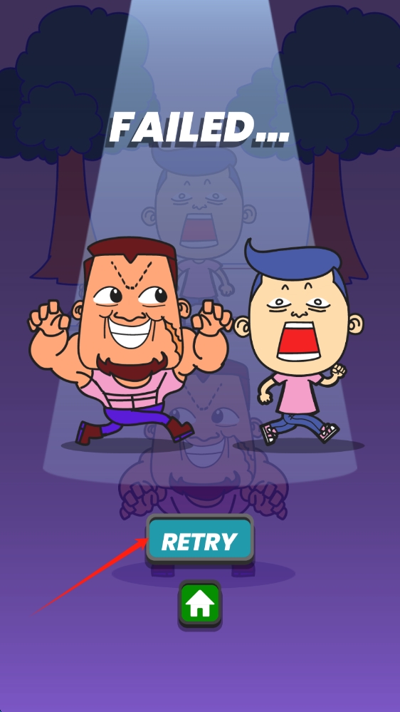 2、若挑戰(zhàn)失敗,點擊RETRY,重新開始,調(diào)整策略,再次嘗試通關(guān),點擊按鈕重開關(guān)卡。