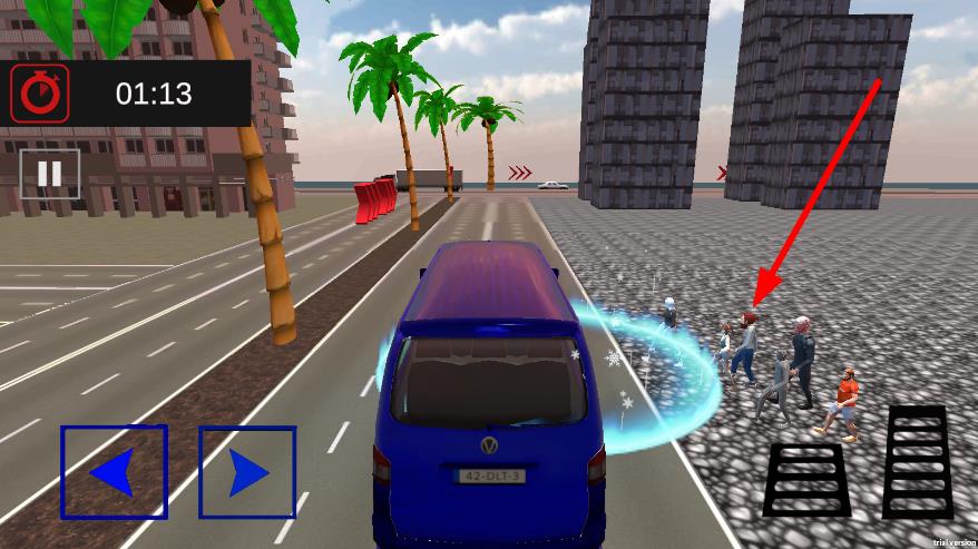 1、進入游戲,通過左右箭頭按鈕控制面包車轉(zhuǎn)向,依據(jù)路面標識和任務(wù)指引,駛向目標區(qū)域,注意避開道路障礙,開啟城市駕駛挑戰(zhàn)。