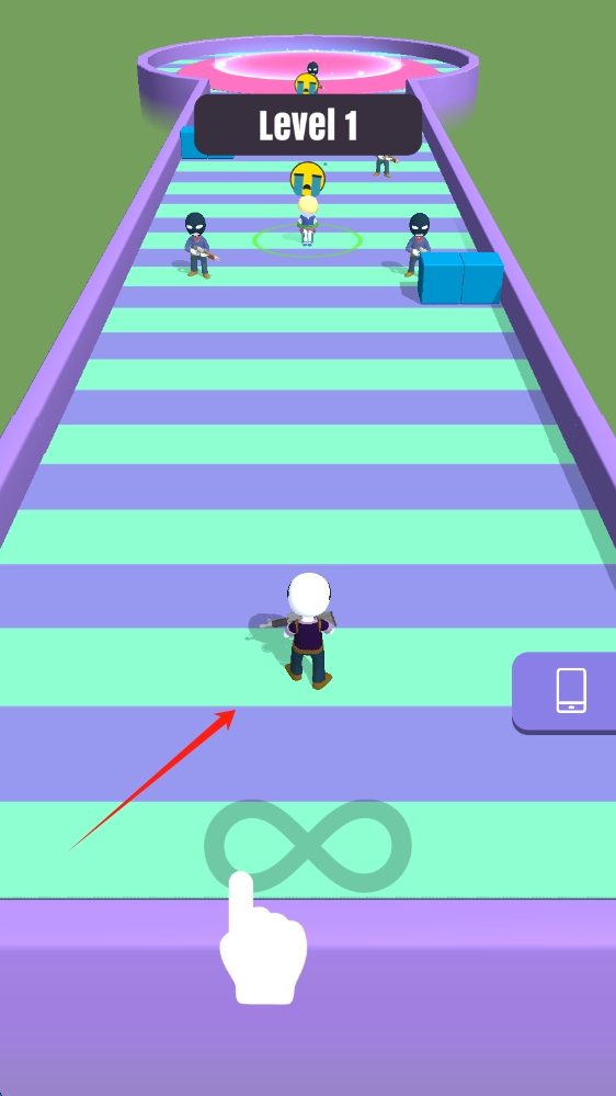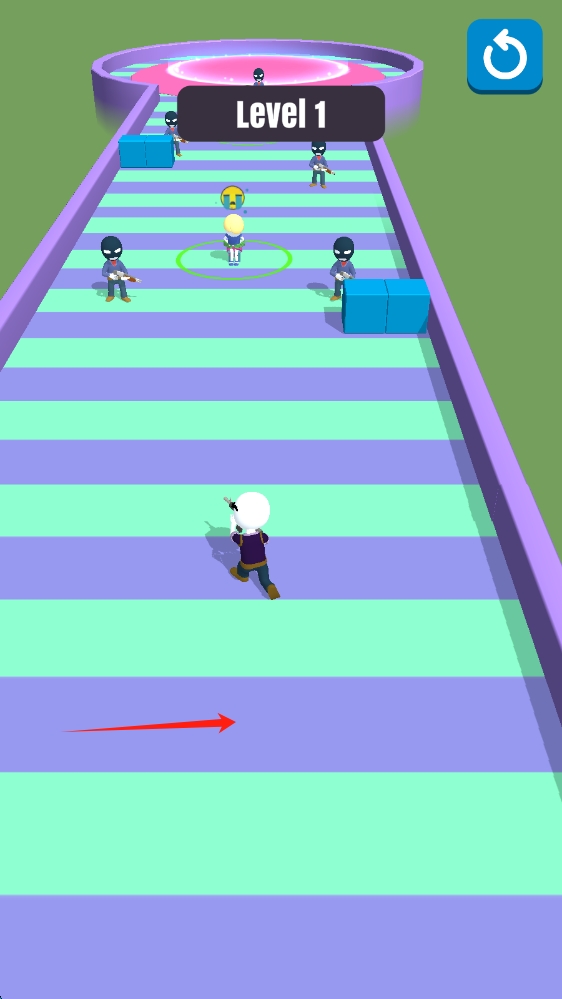 1、游戲場景中,跟隨箭頭指引,操控角色前進,避開障礙,接近目標,點擊開始游戲。