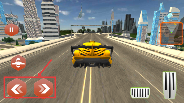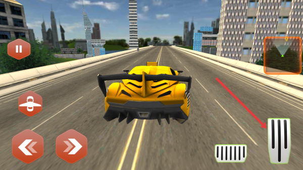2、用右側(cè)按鈕控制加速,在城市道路飛行競速。