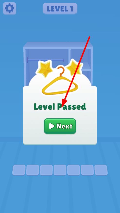 3、當(dāng)所有物品分類完畢,界面彈出“Level Passed”提示,點(diǎn)擊綠色“Next”按鈕,即可進(jìn)入下一關(guān),挑戰(zhàn)更復(fù)雜的衣柜整理任務(wù)。