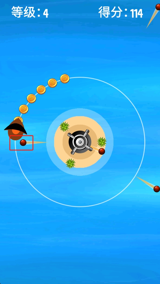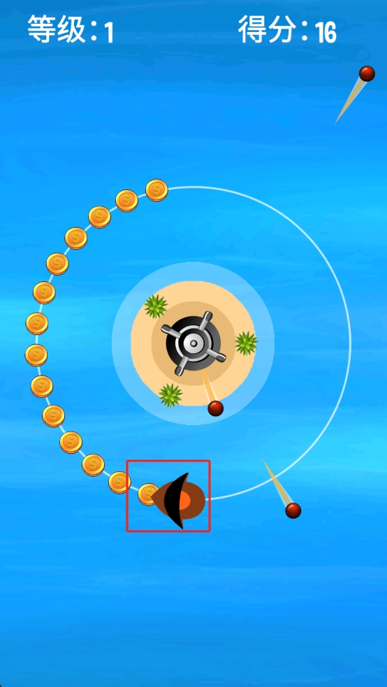 1、進入作品后我們操控紅框內(nèi)的棕色物體沿環(huán)形軌跡移動,收集金色硬幣,同時避開紅色球體,維持繞圈節(jié)奏以提升等級。