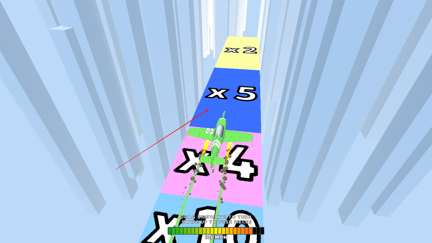 3、清空所有障礙后,飛機(jī)會(huì)緩緩?fù)侣?,落到一個(gè)倍數(shù)高的地方,獲得的獎(jiǎng)勵(lì)會(huì)翻倍更高。