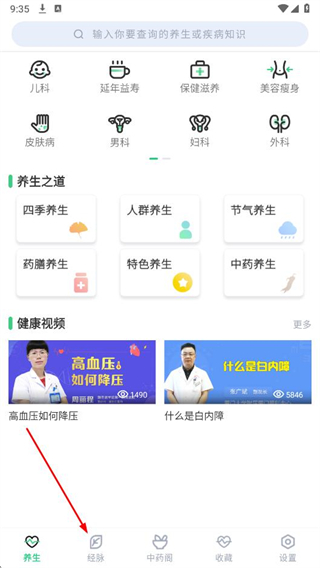 1、打開中藥大全app,在底部導(dǎo)航欄中,點擊經(jīng)脈選項。