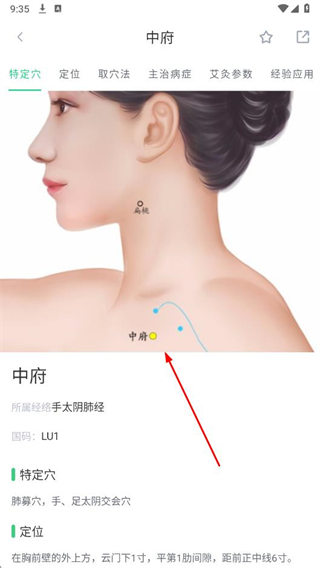 3、點擊進入穴位詳情頁面后,即可查看包含該穴位的經(jīng)脈圖。