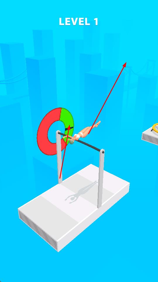 3、在后續(xù)關(guān)卡中,角色會遇到單杠等障礙物,需要通過精準(zhǔn)的操作,讓角色抓住單杠,完成旋轉(zhuǎn)等動作,繼續(xù)推進(jìn)游戲進(jìn)程,完成關(guān)卡挑戰(zhàn)。