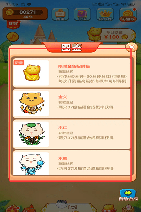4、查看圖鑒可以查看我們可以合成的貓貓。