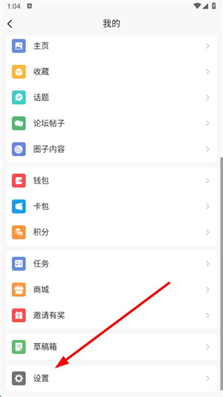 2、在我的頁面點擊設(shè)置選項,進入設(shè)置頁面。