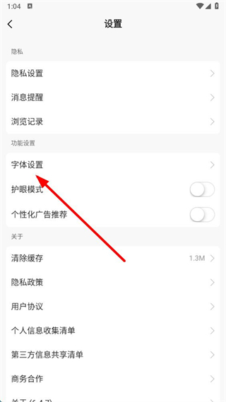 3、在設(shè)置頁面點擊字體設(shè)置選項,進入字體設(shè)置頁面。