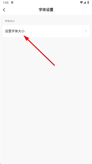 4、在字體設(shè)置頁面點擊設(shè)置字體大小選項,即可調(diào)整字體大小。