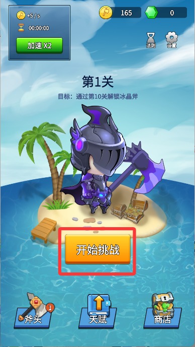 1、進入游戲后點擊屏幕下方開始挑戰(zhàn)開始游戲。