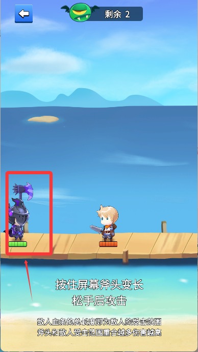 2、開始游戲后按住屏幕使斧頭變長,松手攻擊。