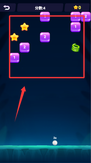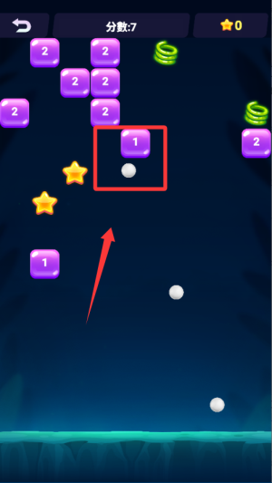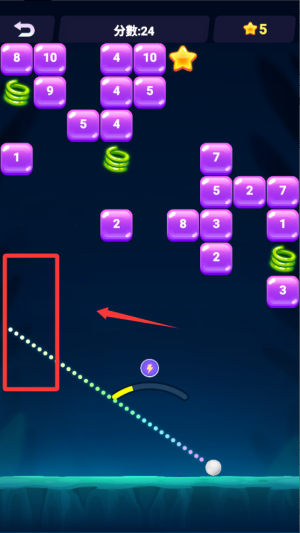 1、開(kāi)局先觀察磚塊布局,找到密集區(qū)域作為重點(diǎn)打擊目標(biāo)??刂坪冒l(fā)射角度,盡量讓彈珠在磚塊間多次反彈提高得分效率。
