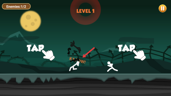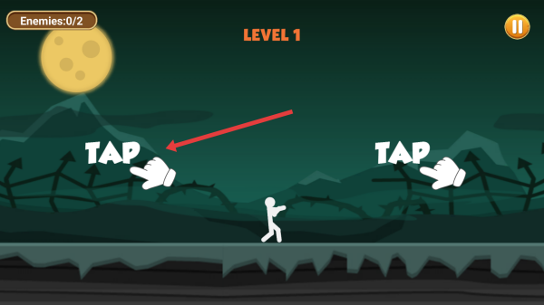 2、在Level1場景,敵人數(shù)量0/2時,左右兩側(cè)出現(xiàn)TAP提示,點(diǎn)擊對應(yīng)側(cè)可控制角色移動或準(zhǔn)備攻擊。