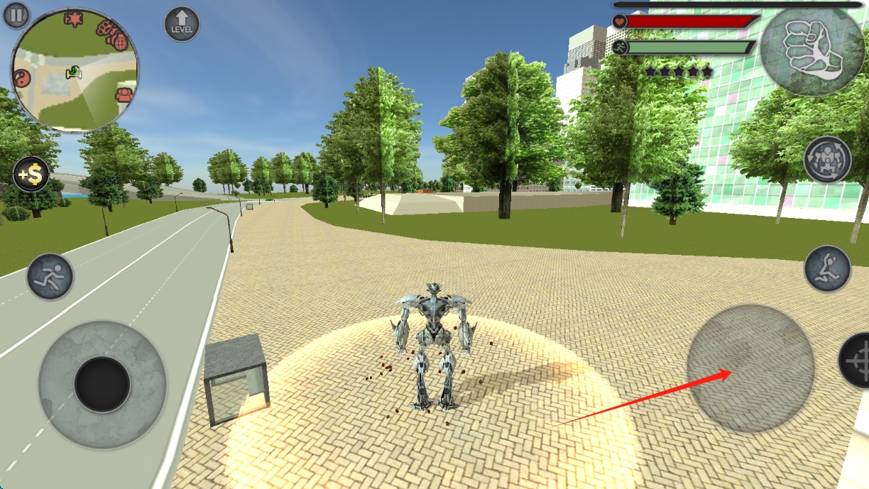 3、在機(jī)器人戰(zhàn)斗場(chǎng)景,通過(guò)虛擬搖桿,靈活操控機(jī)器人移動(dòng),瞄準(zhǔn)敵人,進(jìn)行戰(zhàn)斗,完成關(guān)卡任務(wù),點(diǎn)擊射擊敵人。