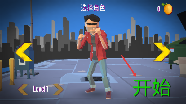 1、在角色選擇界面,確認角色后點擊開始,進入Level1街頭戰(zhàn)斗場景。