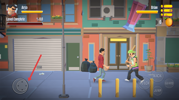 2、戰(zhàn)斗時,用左側搖桿控制角色移動,靠近敵人如持棒球棍的Brian,準備攻擊。