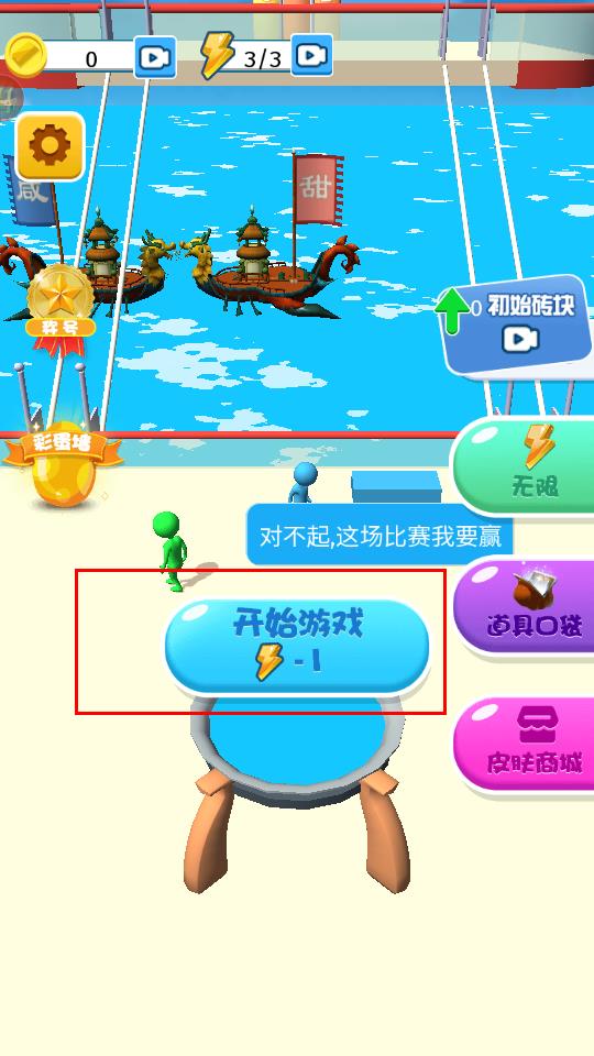 1、首先玩家進(jìn)入界面,點(diǎn)擊開始游戲按鈕,消耗閃電道具,與其他角色比如兔女郎、三師公等開啟競賽。