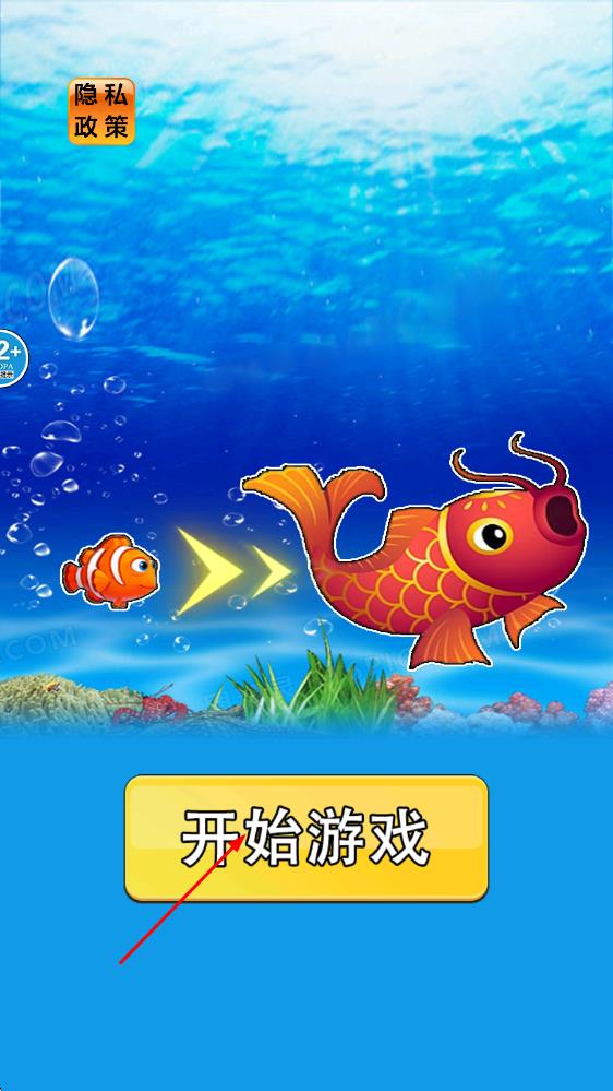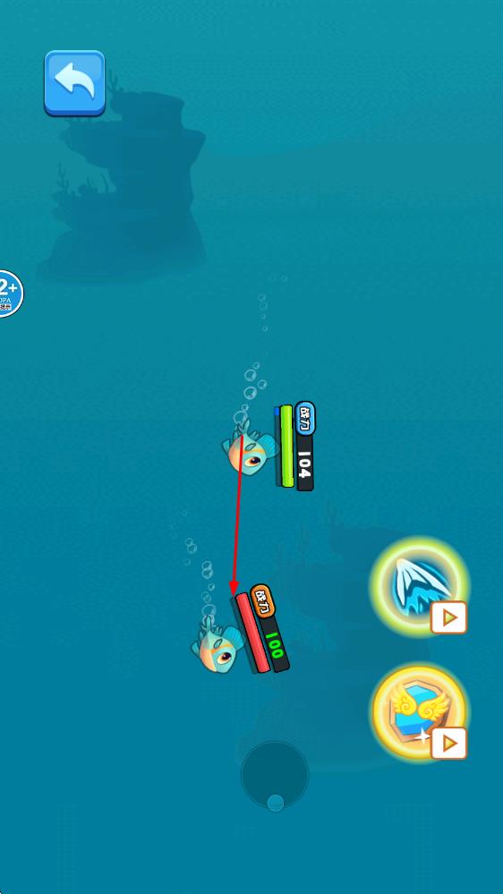 1、進入游戲后,操控小魚在海底游動,捕食體型更小的魚類和食物積累能量,同時避開大型魚類,熟悉基本的生存與成長規(guī)則。