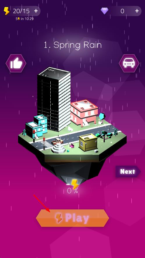 1、進(jìn)入游戲后選擇喜歡的曲目與車輛,熟悉屏幕上的節(jié)奏按鍵布局,等待音樂(lè)響起,準(zhǔn)備跟隨節(jié)奏操作。
