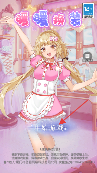 1、進(jìn)入游戲后,在主界面找到開(kāi)始游戲按鈕并點(diǎn)擊,開(kāi)啟游戲的換裝之旅。