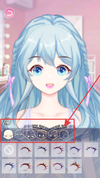 3、在妝容設(shè)置界面,下方有多種表情選項(xiàng),點(diǎn)擊紅色方框內(nèi)的表情圖標(biāo),為角色更換對(duì)應(yīng)的表情,打造獨(dú)特形象。