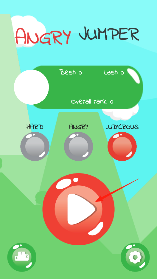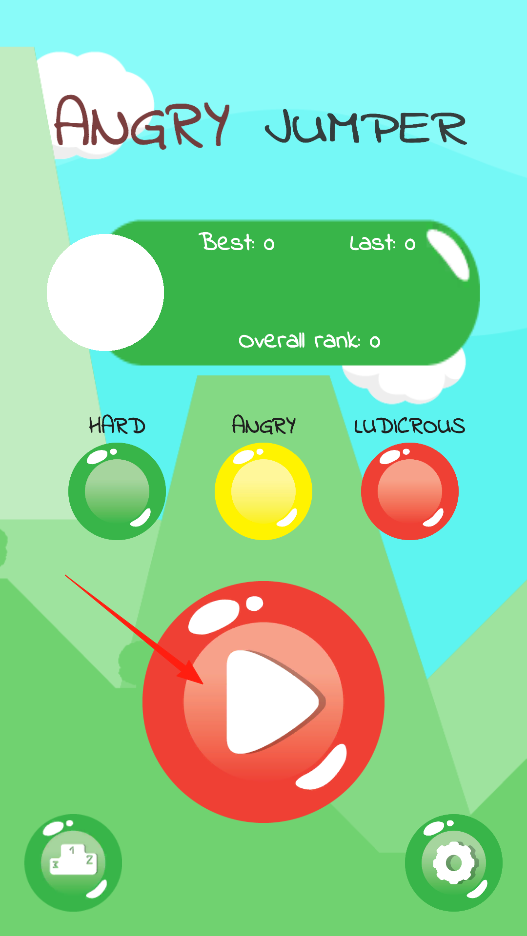 1、在憤怒的跳鳥(niǎo)主界面,點(diǎn)擊紅色播放按鈕,選擇難度,進(jìn)入跳躍場(chǎng)景,通過(guò)此操作,開(kāi)啟游戲挑戰(zhàn),操控角色在關(guān)卡中跳躍,體驗(yàn)不同難度的玩法。