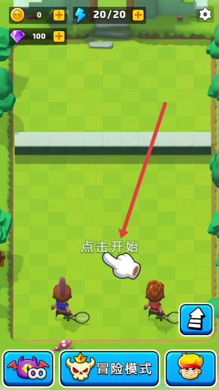 1、在游戲初始界面,按照紅色箭頭指示,點擊屏幕中的文字處,進(jìn)入章節(jié)選擇環(huán)節(jié),開啟冒險模式之旅。