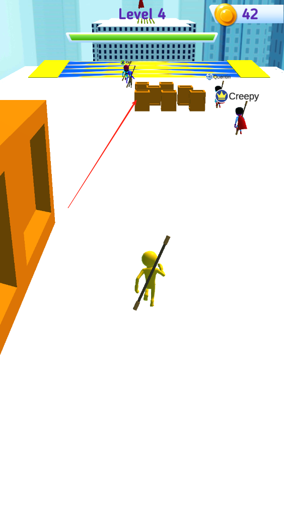1、點擊屏幕游戲開始后,操縱小人往前移動,要避開面前的所有障礙,如果撞上,就會撞得四分五裂。