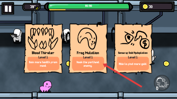 3、遇到技能選擇界面,依據(jù)戰(zhàn)斗需求,點(diǎn)擊Frog-Mutation技能,助力Lanny在逃亡中對(duì)抗敵人。