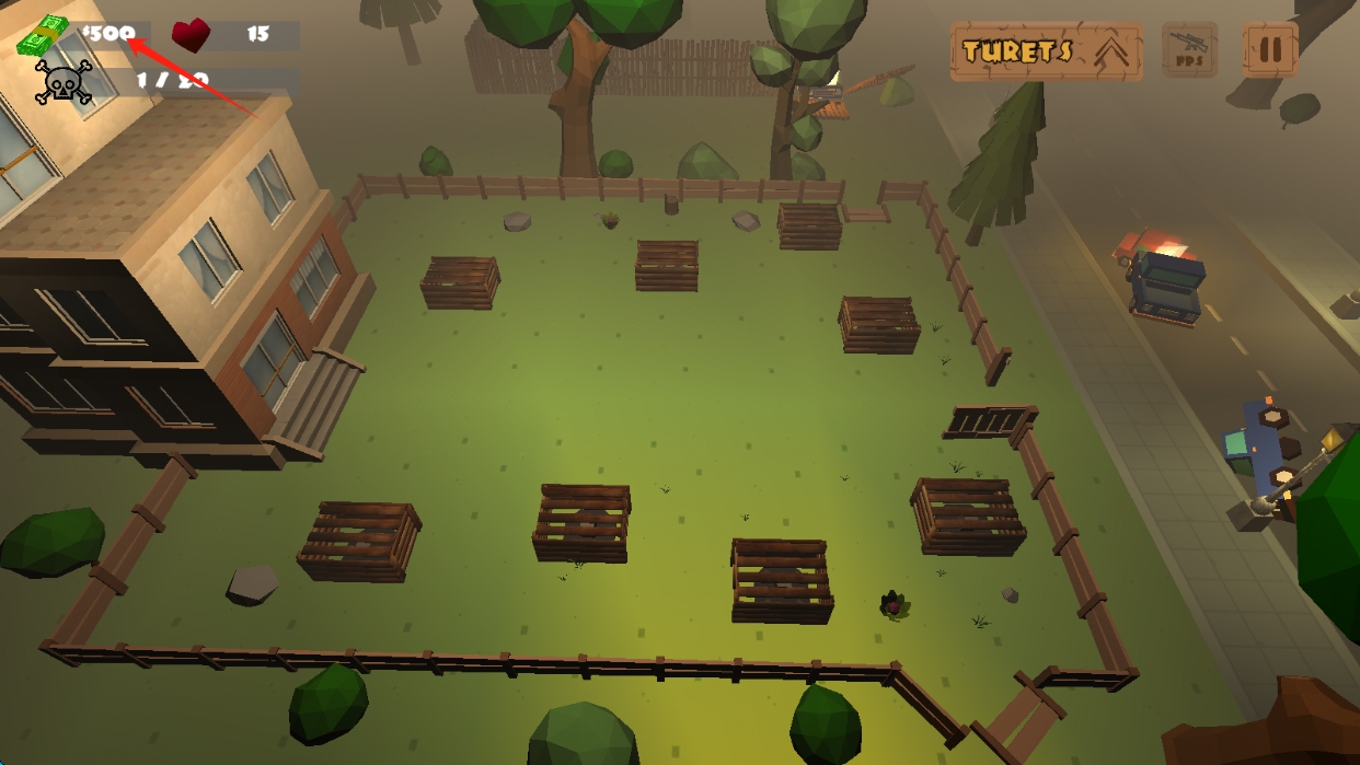 2、進入塔防場景,根據箭頭提示,查看金錢數量,合理規(guī)劃防御布局,點擊查看金幣。