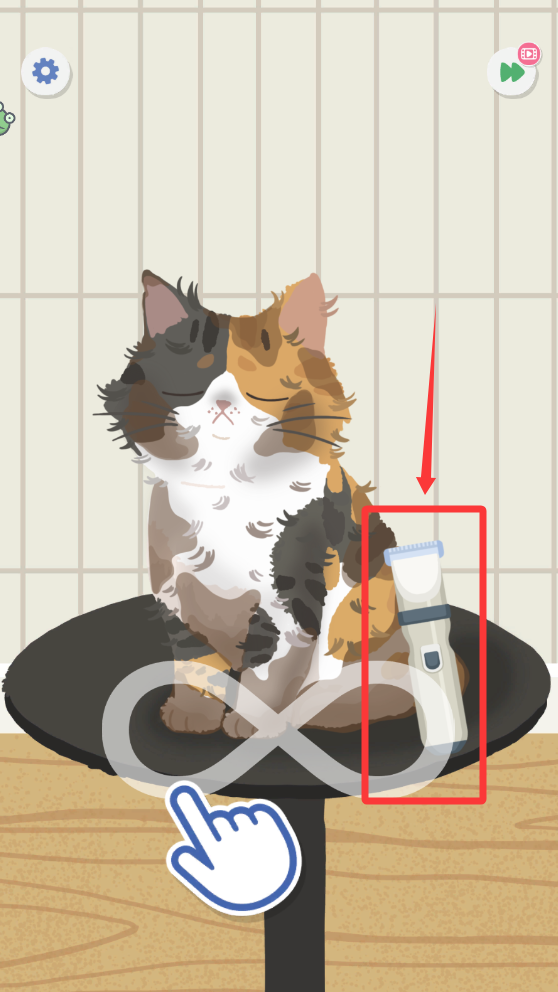 2、先把貓是雜毛剃一下吧,移動(dòng)剃毛刀。