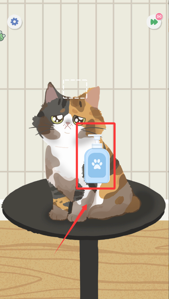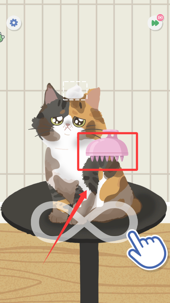 4、然后移動(dòng)粉色的梳理貓毛器打理一下。