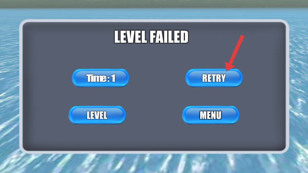 3、若時間到了或者掉入水中則關(guān)卡失敗,點擊RETRY按鈕重新挑戰(zhàn),再一次嘗試進(jìn)行通關(guān)。
